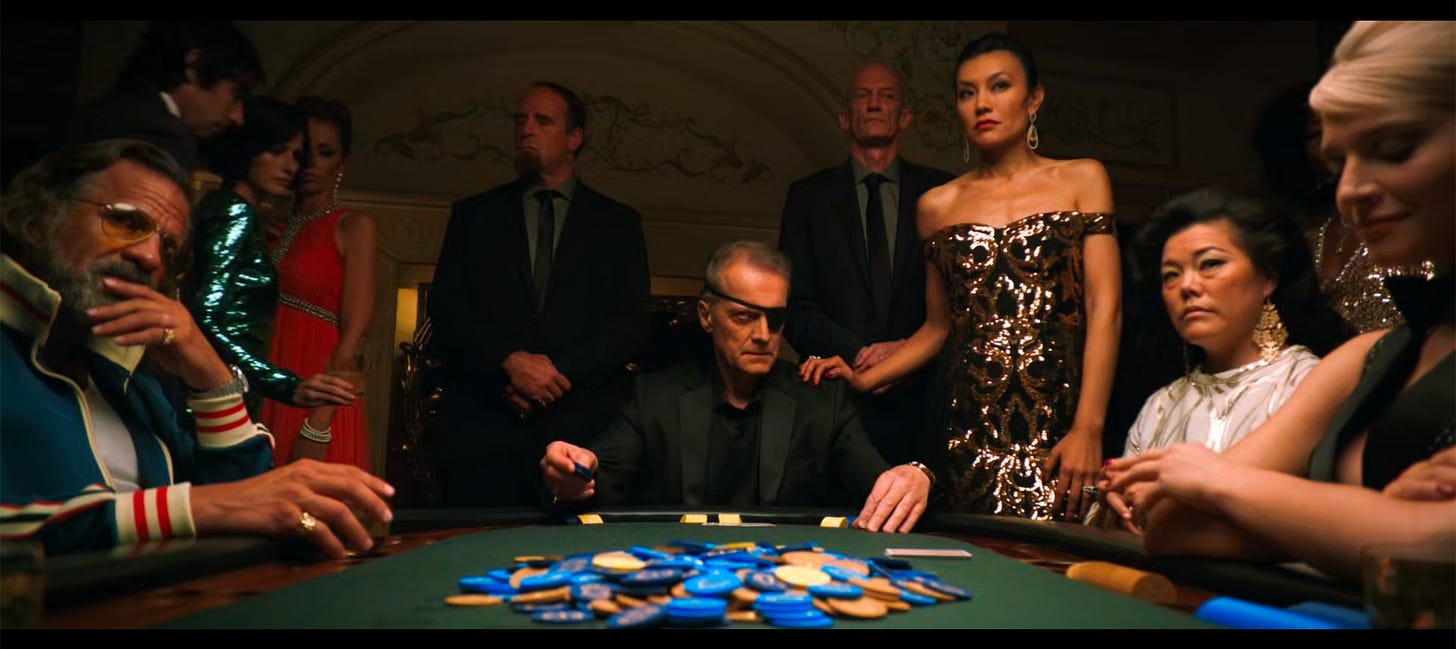 Diabaté wins the poker hand, and all the women at the table. Once he has left the casino, all the Others—including Blofinger and his henchemen—stop acting and clean up the scene. It’s like the holodeck on Star Trek, and but the holographic characters have to put away all the toys after the game.